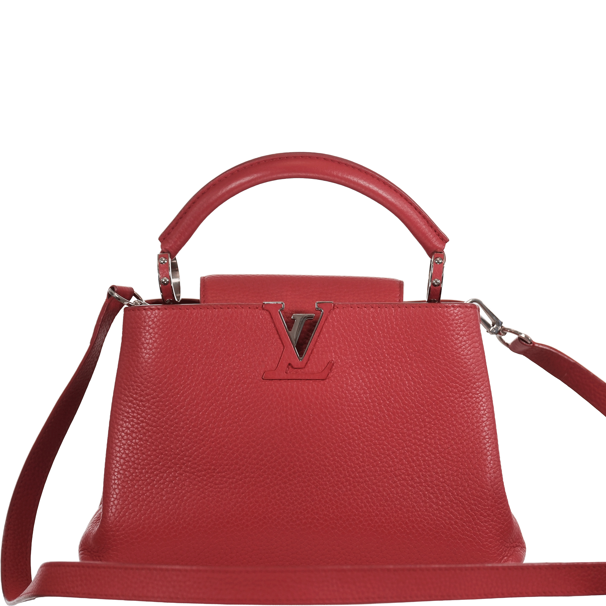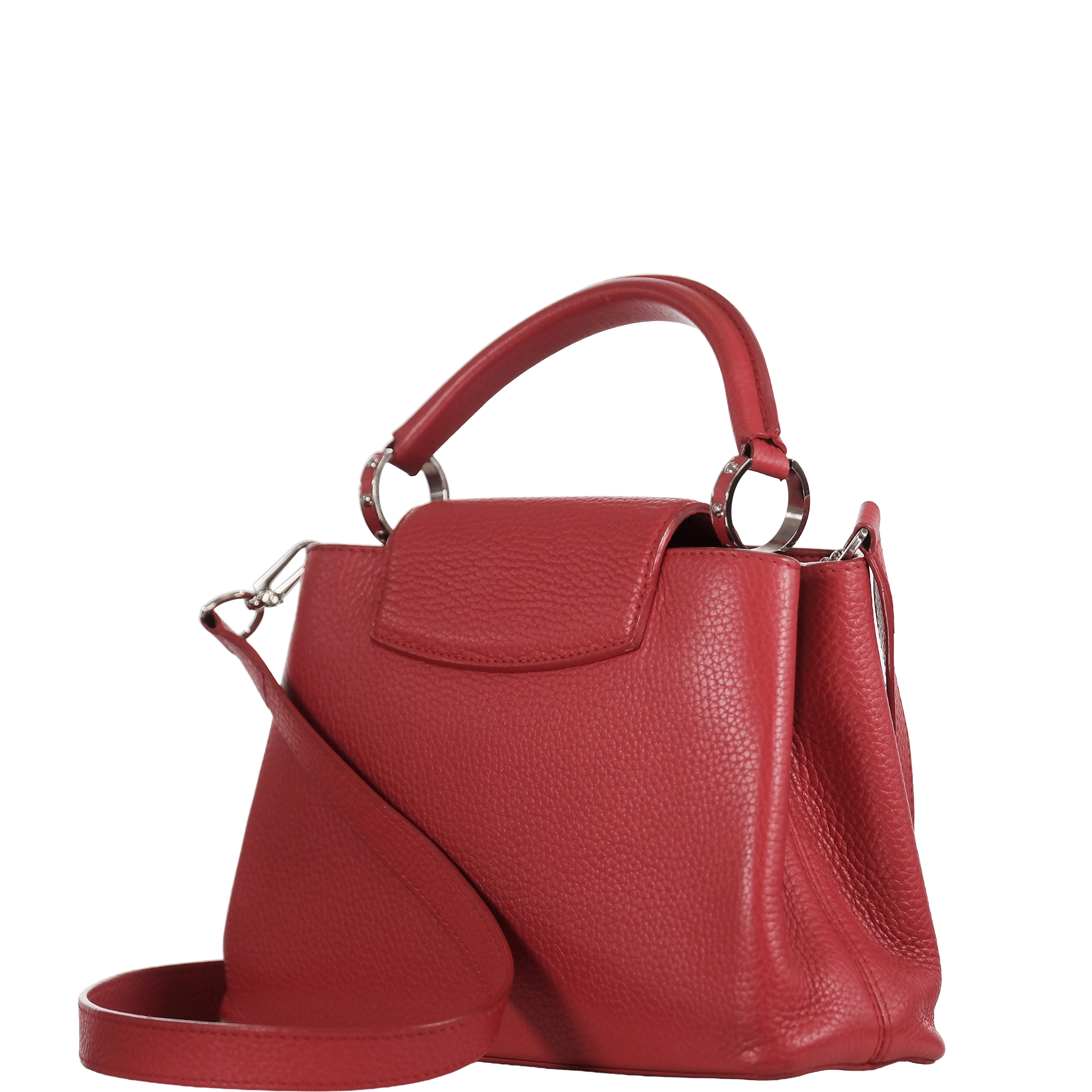 This elegant handbag features a structured silhouette, rolled top handle, and the iconic LV logo detail at the front. The bag includes a detachable shoulder strap and opens to a leather-lined interior designed to carry essentials with refined Louis Vuitton style.