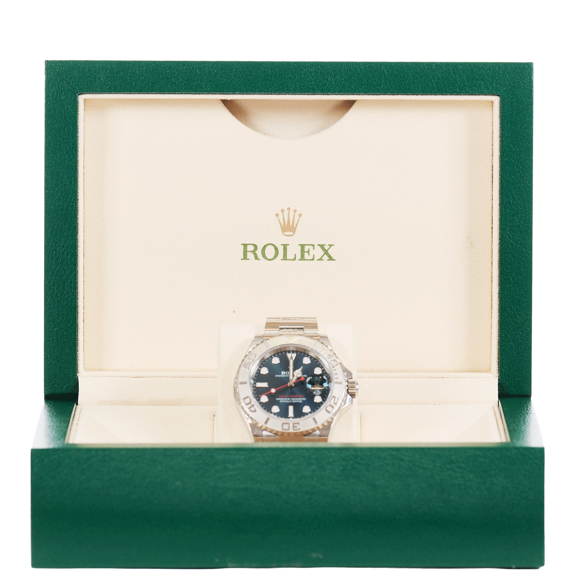 This sporty luxury timepiece features luminous hour markers, a date display with the signature Cyclops lens, and Rolex’s precision automatic movement. Designed for both performance and elegance, the Yacht-Master blends nautical inspiration with timeless Rolex craftsmanship.